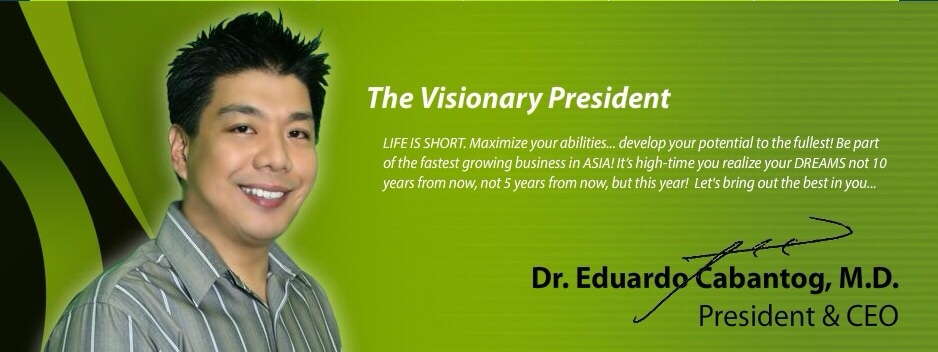 Dr. Eduardo Cabantog is a graduate of Medicine from Pamantasan ng Lungsod ng Maynila, a pioneer, leader, and model institution of higher learning in the Philippines. After acquiring his license as a Medical Doctor and serving as a company physician in one of the well-known local medical and clinical services provider for a couple of years. He practiced his medical expertise in some of the most reputable hospitals in the Philippines. He ventured into the networking business and joined other networking companies before instituting Alliance In Motion Global, Inc. in 2006. His remarkable success in his new found career and having survived difficult challenges molded a great leader and survivor fit to lead a fast growing company in a world of multi-level marketing business where the competition is very stiff.