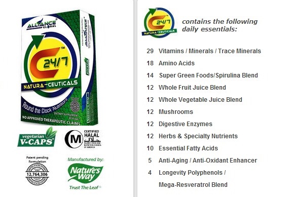 The most nutritionally dense food concentrate in the world market today, C24/7 Natura-Ceuticals contains the most number of anti-oxidants with approximately 22,000 phytonutrients in one product. The ingredients of C24/7 work in “synergy” to produce the maximum result for your body, making it the most potent anti-aging product in the history of supplementation.